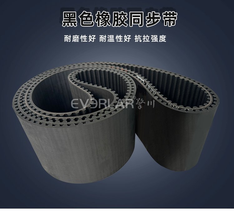 其以橡膠為基體材料,內(nèi)嵌高強(qiáng)度鋼絲繩或玻璃纖維繩作為抗拉層,外覆耐磨、抗老化的橡膠層,形成兼具柔韌性與強(qiáng)度的復(fù)合結(jié)構(gòu)。這種設(shè)計(jì)使橡膠同步帶既能承受較大拉力,又能適應(yīng)復(fù)雜傳動(dòng)場(chǎng)景,減少能量損耗。