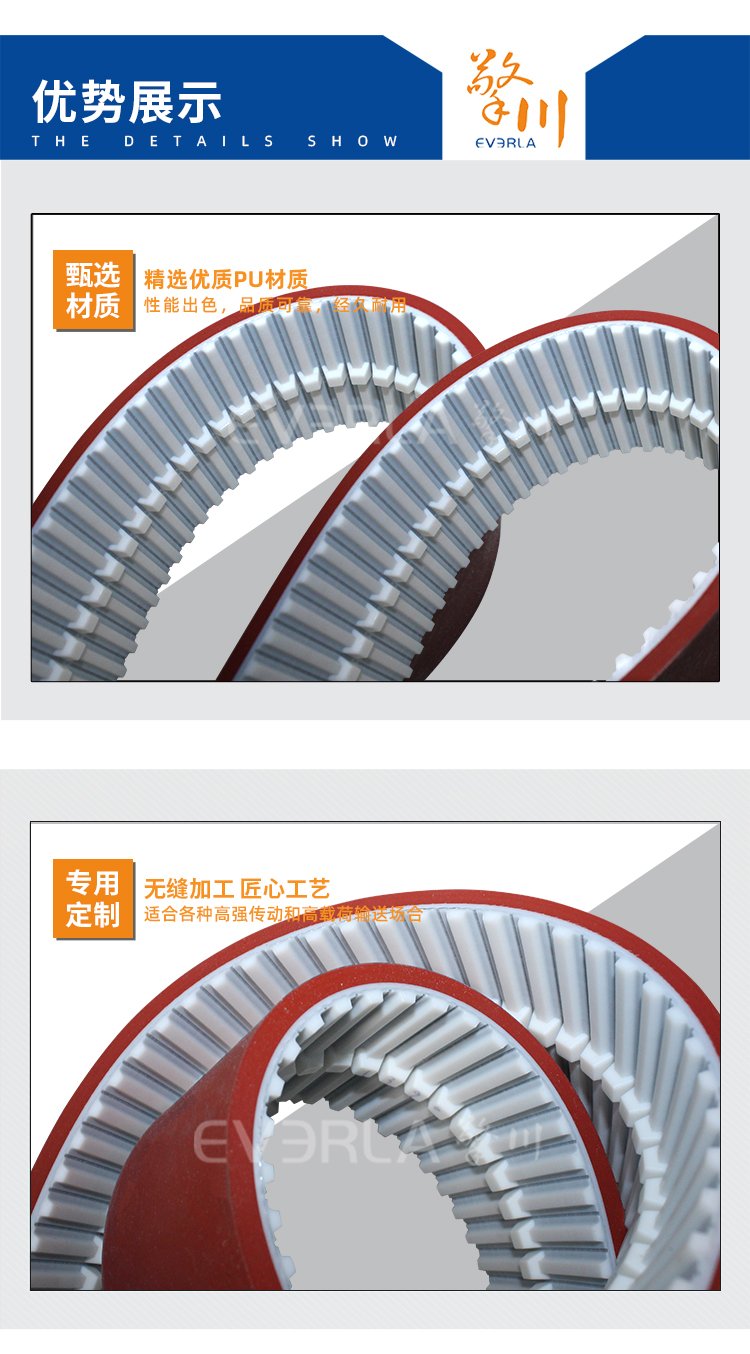 擎川EVERLA > pu同步帶 > PU同步帶加紅膠加導條