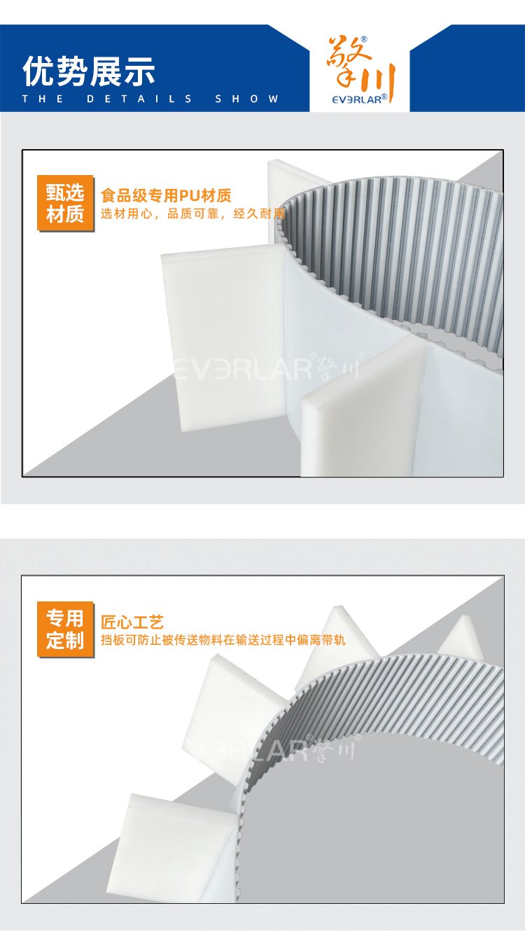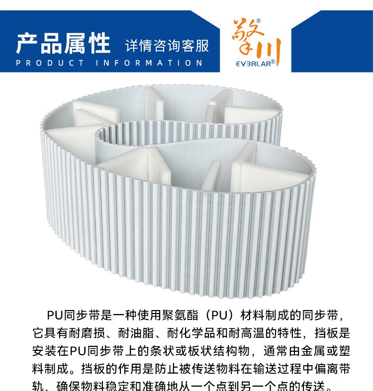 擎川EVERLA > pu同步帶 > PU同步帶加擋板耐磨平穩(wěn)降噪工業(yè)傳動(dòng)帶定制