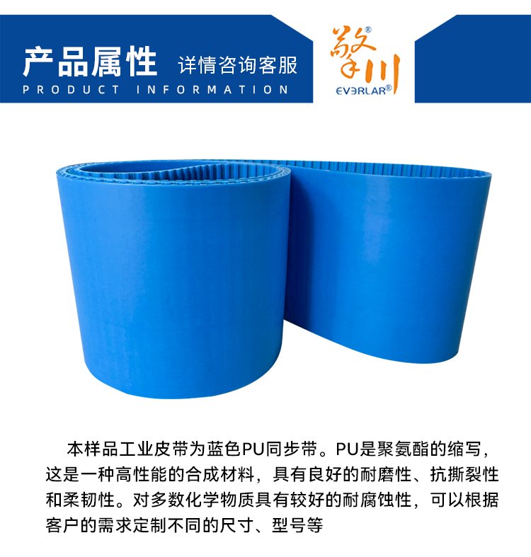 擎川EVERLA > pu同步帶 > 藍色PU同步帶耐油耐腐蝕耐高溫工業(yè)傳動帶定制