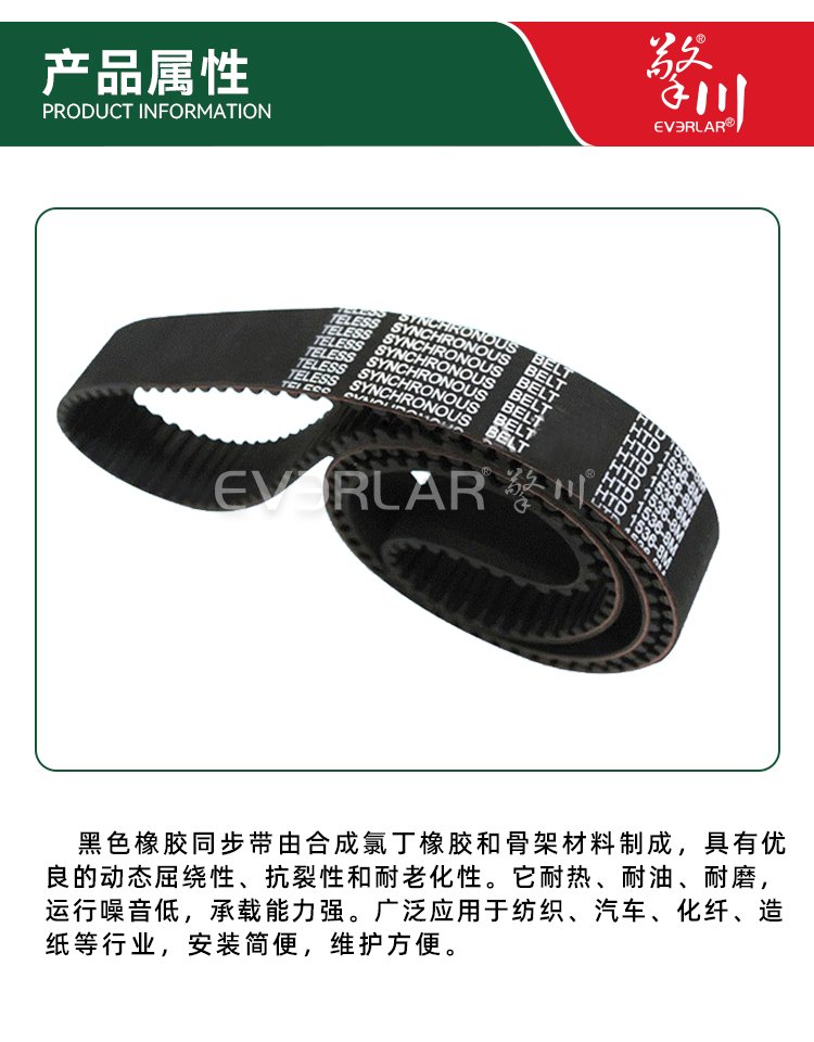 擎川EVERLA > pu同步帶 > 黑色鋼絲開口橡膠同步帶防滑耐磨耐老化工業(yè)皮帶定制