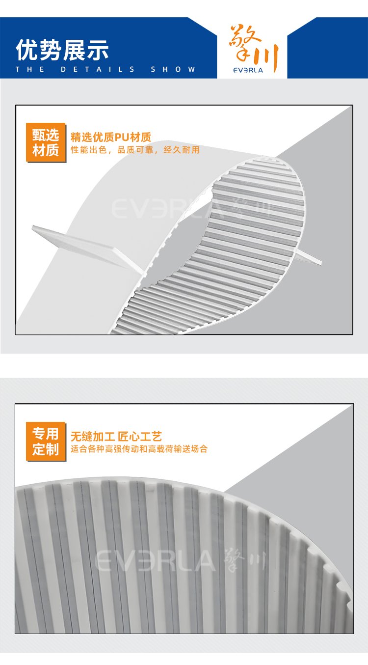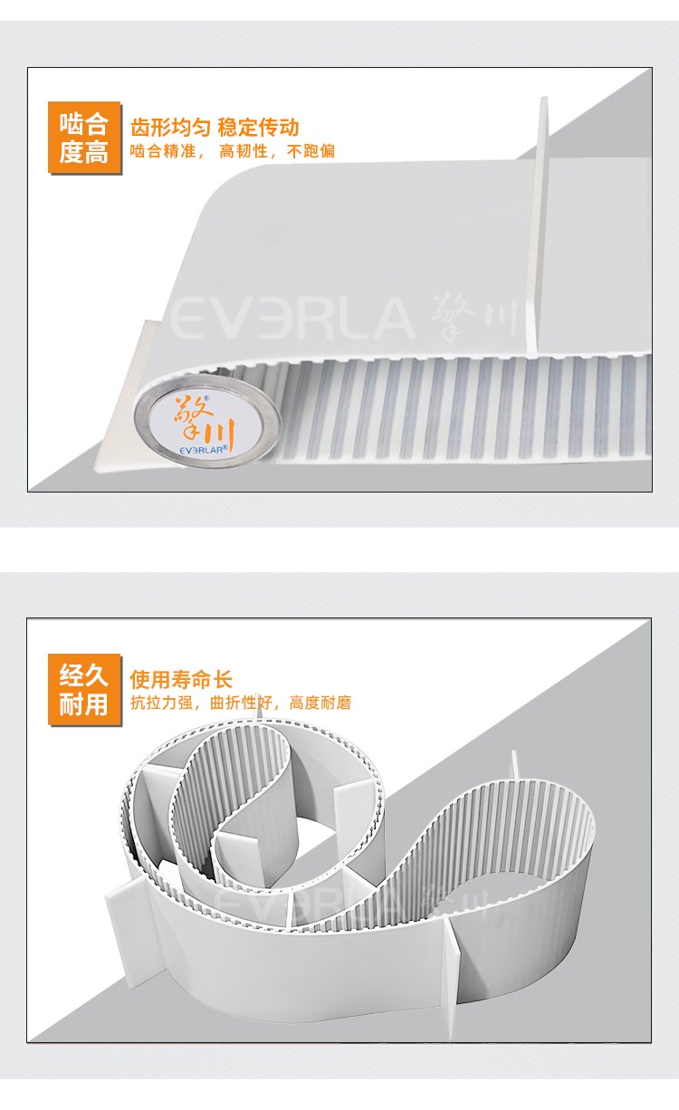 擎川EVERLA > pu同步帶 > 白色PU同步帶加擋板耐磨耐油耐腐蝕工業(yè)皮帶