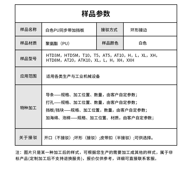 白色PU同步帶加擋板耐磨耐油耐腐蝕工業(yè)皮帶